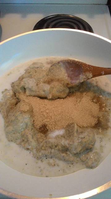 - Siapkan wajan /panci, masukkan kacang hijau yg sudah diblender lalu tuang santan beri gula dan garam juga vanilla extract.
